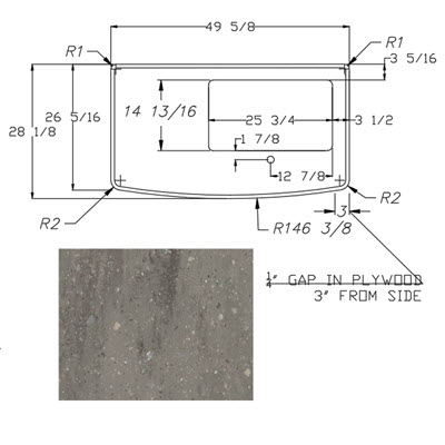 Countertop - Hutch Top - CG315RLS/CG302RLS - Corian - Ogee Edge - Double Lip - 1/2" Ash Aggregate - Furrion