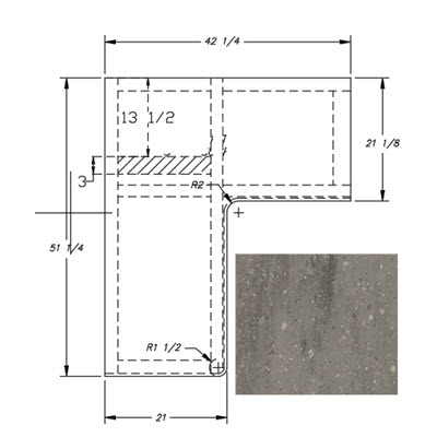 Countertop - Kitchen Top - CG354FLS - L Shaped - w/Sink Cutout - Corian - Eased Edge - Double Lip - Ash Aggregate