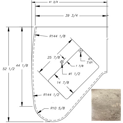 Countertop - Kitchen Top (A) - 29RKS - 1 1/4" x 41 3/4" x 52 1/2" - Pressed - MDF - C2 - Eased Edge - Ash Aggregate