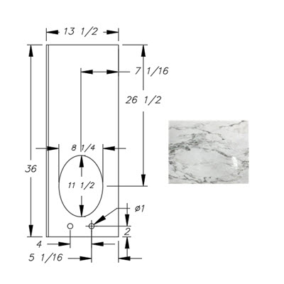 Countertop - Lav - Table Top - 1 1/4 x 13 1/2" x 36" - Pressed - MDF - C2 - WW04 - w/Buildup - 131-2649 - Lightning Glass