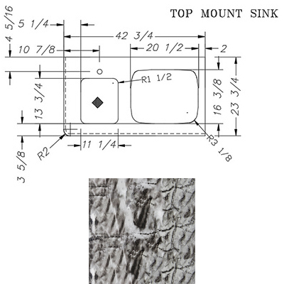 Countertop - Kitchen Top - LH Edge - SS188BH - 23 3/4" x 42 3/4" - Pressed - C2 - w/Buildup - Edge Break Profile - Fantastico Sable