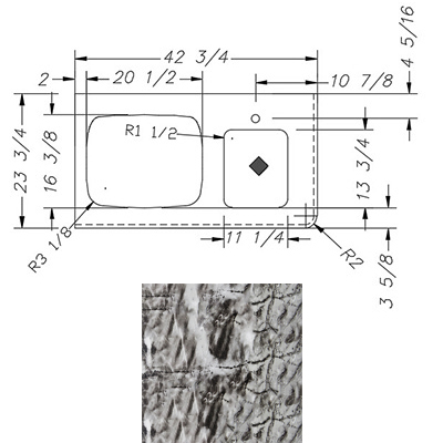 Countertop - Kitchen Top - RH Edge - 23 3/4" x 42 3/4" - Carb 2 - Break Edge Profile - w/Buildup - Sultano Gray