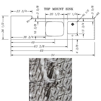 Countertop - Kitchen Top - 26 1/2" x 94" - Carb 2 - Break Edge Profile - w/Buildup - Sultano Gray