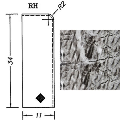 Countertop - End Table Top - RH - 11" x 34" - Carb 2 - Break Edge Profile - w/Buildup - Sultano Gray