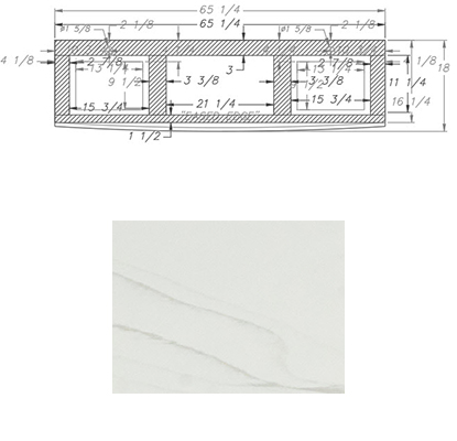 Countertop - Lav Top - 65 1/4" x 18" - w/Double Rectangular Sink Cutout - C2 - Eased Edge - LG Calacutta Luna
