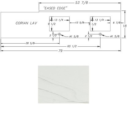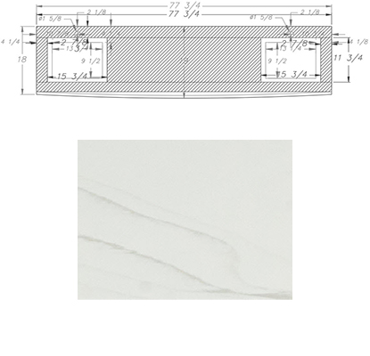 Countertop - Lav Top - 79" x 18" - w/Double Rectangular Sink Cutout - MDF - C2 - Eased Edge - LG Calacatta Luna