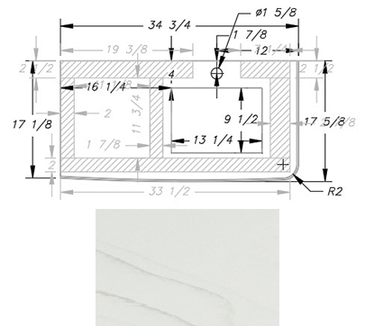 Countertop - Kitchen Top - 25 3/8" x 54 1/2" - w/Sink Cutout - Dado for Backsplash - C2 - Eased Edge - LG Calacatta Luna