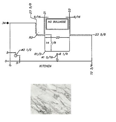Countertop - Kitchen Galley Top - 41 3/4" x 42 1/2" - w/Farm Sink Cutout - C2 - WW05 - w/Buildup - Arabesque Crystal