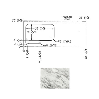 Countertop - Entertainment Center Top - 3300RKS - 1 1/4" x 21 1/8" x 57 5/8" - Pressed - MDF - C2 - WW05 - w/Builup - 131-3025a - Arabesque Crystal