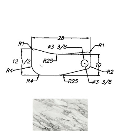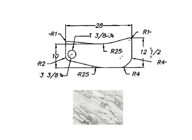 Countertop - Range Arm - 3" x 23 5/8" - C2 - WW05 - w/Buildup - Arabesque Crystal