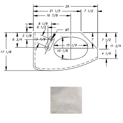 Countertop - Kitchen Top - 34TSB - 1 1/4" x 22 1/2" x 72" - Pressed - MDF - C2 - Ash Aggregate - Rev B