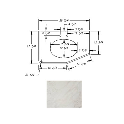 Countertop - Lav Top - 24RDS/29BHL - 1 1/4" x 17 7/8" x 28 3/4" - Pressed - MDF - C2 - Round Over - Isla Opal