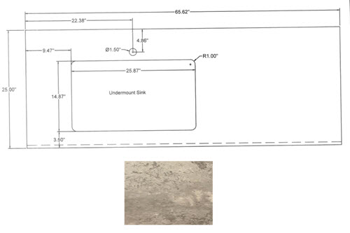 Countertop - Kitchen Top - 23MLE-A - 1 1/4" x 25" x 65 1/8" - w/Sink Cutout - Pressed - MDF - C2 - Ogee Edge - Ash Aggregate