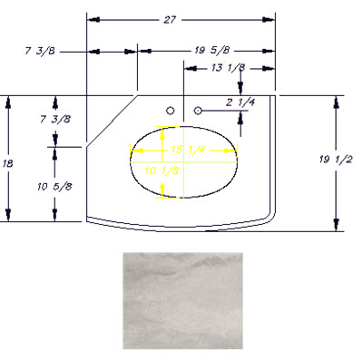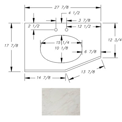 Countertop - Lav Top - 364BHL - 17 1/4" x 27" - Pressed - C2 - WW04 - w/Buildup - Painted White - P4-0418a - Sandstone Natural-NG