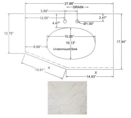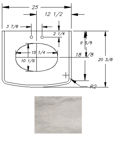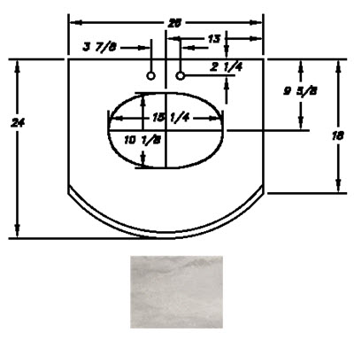 Countertop - Lav Top - 364BHL - 25" x 31 1/4" - Pressed - C2 - WW04 - w/Buildup - Painted White - P4-0417 - Sandstone Natural-NG