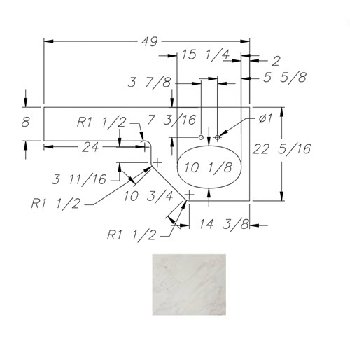 Countertop - Lav Top - CG25FKD - 1 1/4" x 22 5/16" x 49" - Pressed - MDF - C2 - Round Over - Isla Opal