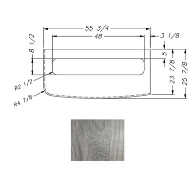 Countertop - Entertainment Base Top - CR28RKS-B - 1 1/4" x 25 7/8" x 55 3/4" - Pressed - MDF - C2 - Eased Edge - Rivera Oak Cassis