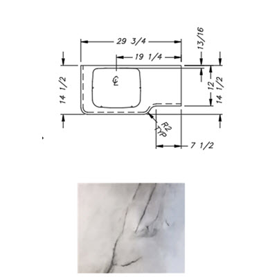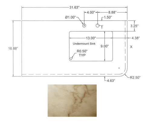 Countertop - Lav Top - CR-34BHS-A - 1 1/4" x 16 7/8" x 31 5/8" - w/Square Sink - Pressed - MDF - C2 - Nordic Marble