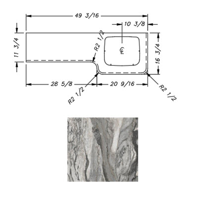 Countertop - Lav Top - CR22MRK - 1 1/4" x 16 3/4" x 49 3/16" - Pressed - MDF - C2 - 1/2" Round Over - Shenandoah Dove