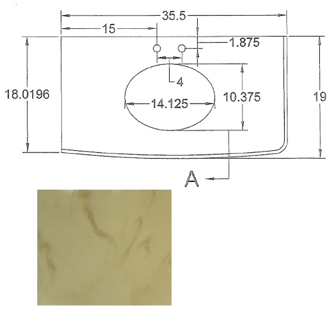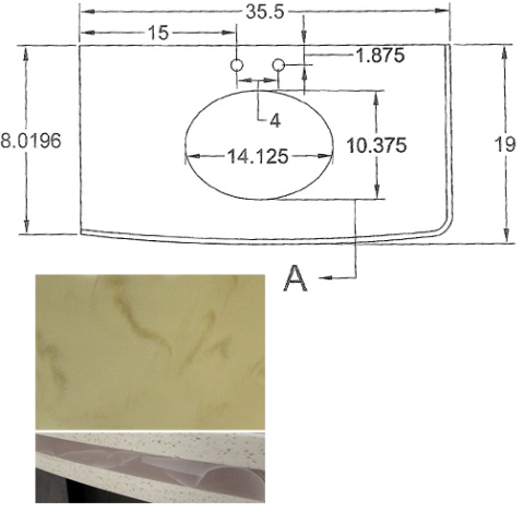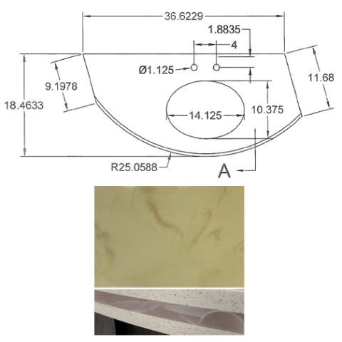 Countertop - Vanity Top - RP355TS - w/ASC 1614 Small Sink - Bone - Hanex - Twister Light w/Avonite - Sirocco Stripe