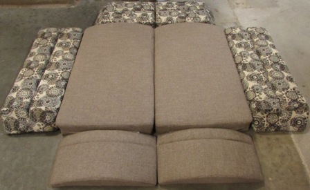 Cushion - Dinette - Caramel - 39" - 2/Tone - Square Edge/Arched Back - 2 Pc - Wiota Bark/Disconnect Pinto/Cargoliner Charcoal