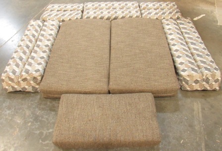 Cushion - Dinette - Caramel - 39" - Rounded Edge - 6 Pc - Wiota Bark/Disconnect Pinto/Cargoliner Charcoal