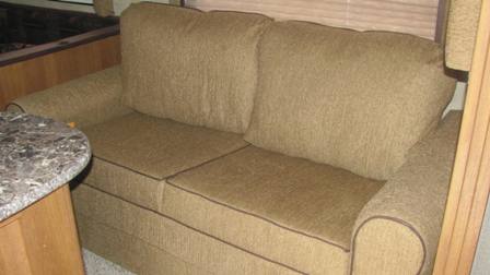 Sofa - Tri Fold - Sandstone - 68" - V2-68 - Knapsnack Mineral - w/Mahogany Topstitch