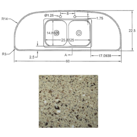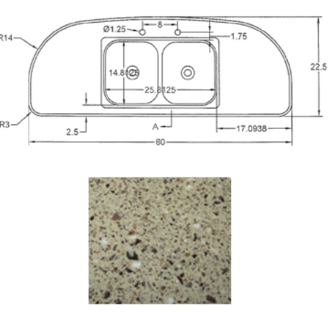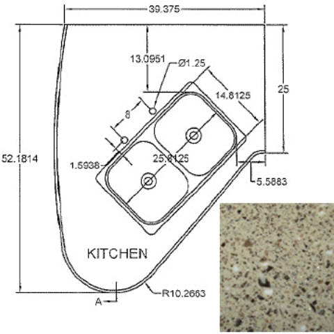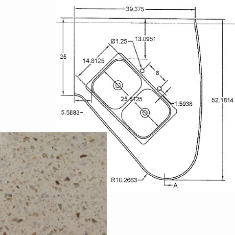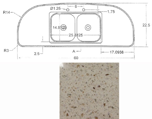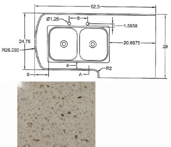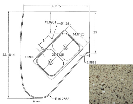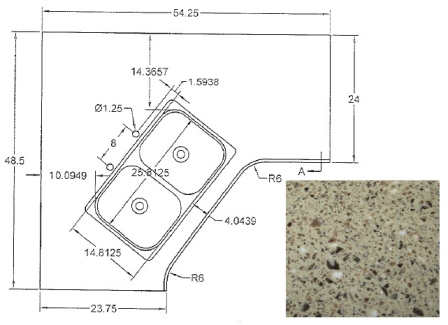 Countertop - Kitchen Top - CG28RDB - Revised - w/Sink Cutout - Hi Macs - Venus Lite Libra