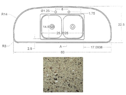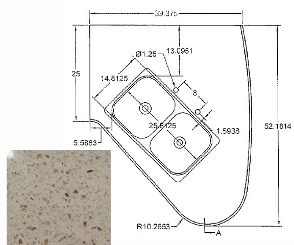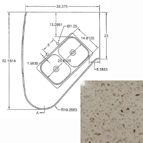 Countertop - Kitchen Top - CG326RDS - w/Sink Cutout - Revised - Hi Macs - Venus Lite Libra