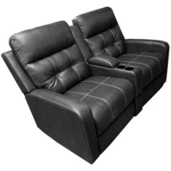 Sofa - Home Theater - Ashford - Flat Welt - w/6" Console & Rails - Eclipse - Brilliant Coal - Black Welt w/Sand Thread - Import