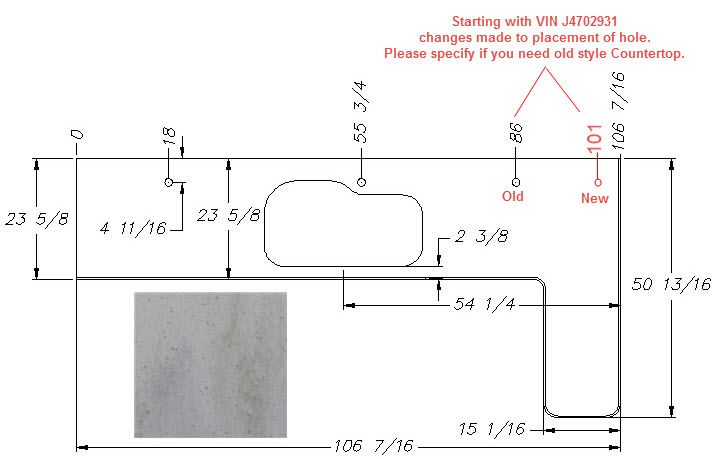 Countertop - Kitchen Top - MO3730/31 - w/SS Sink Cutout - Corian - Eased Edge - Double Lip - Sea Salt