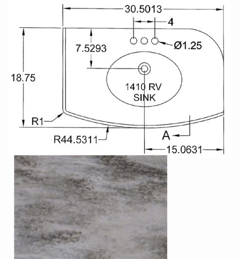 Countertop - Vanity Top - MO3120 - w/Gemstone 1410RV Winter White Sink - Corian - Sea Salt - Eased Edge - Double Lip