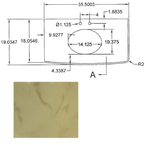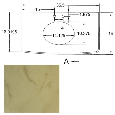 Countertop - Lavatory Top - 422SP - 35 1/2" x 19" - w/1614 Small Vanity Sink - Hanex - Twister Light