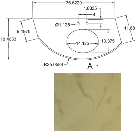 Countertop - Range Arm - 3513P - 2" x 23 3/4" - Pressed - w/Buildup - Aurora Marble