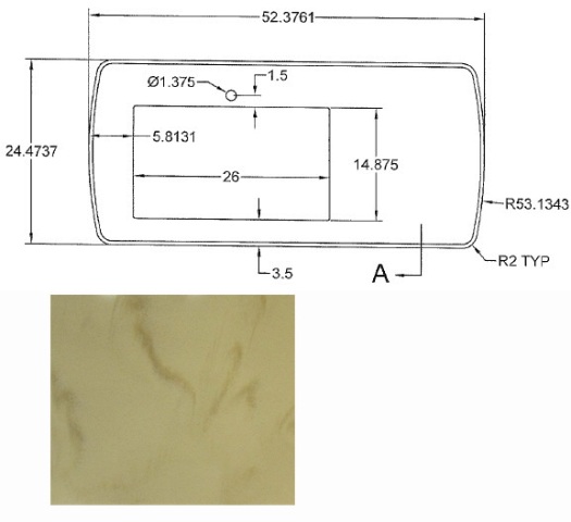 Countertop - Kitchen Top - RP421 - w/Square Sink Cutout - Ancona w/Avonite - Hi-Macs - Eased Edge - Double Lip - Sirocco Stripe - Revised