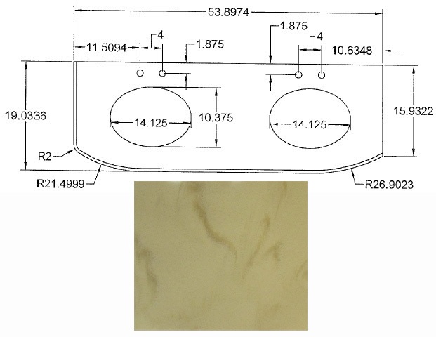 Countertop - Lavatory Top - RP426TS - w/Double 1614 Small Vanity Sinks - Hanex - Twister Light