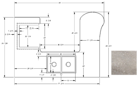 Countertop - Kitchen Top Extension - 3513P - 23" x 15 3/4" - Pressed - w/Buildup - Aurora Marble