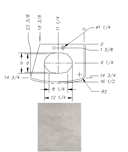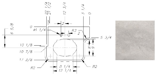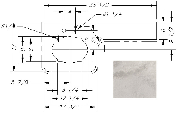 Countertop - Range Arm - 285BHSL/255BHSL/299BHSL/264RLSL/283BHSL - 1 7/8" x 24 1/8" - Pressed - w/Buildup - Sandstone Natural Vinyl