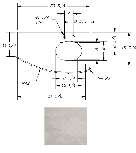 Countertop - Lav Top - 2711BS/233RBSL/230RBSL - 33 5/8" x 17 3/4" - Pressed - Melamine Back - Sandstone Natural Vinyl