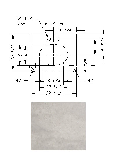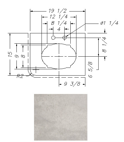 Countertop - Lav Top - 253RBSL - 20" x 18 5/8" - Pressed - Melamine Back - Sandstone Natural Vinyl
