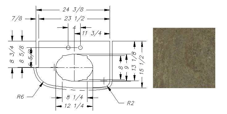 Countertop - Range Arm - 233RBSL/243BHSL - 2 1/4" x 24 1/4" - Pressed - w/Buildup - Sandstone Natural Vinyl