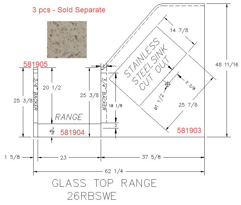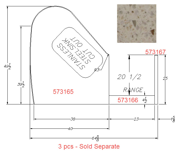 Countertop - Range Arm - 3" - CG27RKS - Hi Macs - Venus Lite Libra