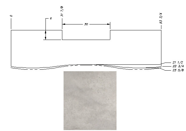 Countertop - End Table Top - LH - 6 3/8" x 30" - No Buildup - Pressed - Raw Back - Sandstone Natural Vinyl