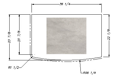 Countertop - End Table Top - RH - 290RLSL/264RLSL - 6 3/8" x 17 1/2" - Pressed - Raw Back - Sandstone Natural Vinyl