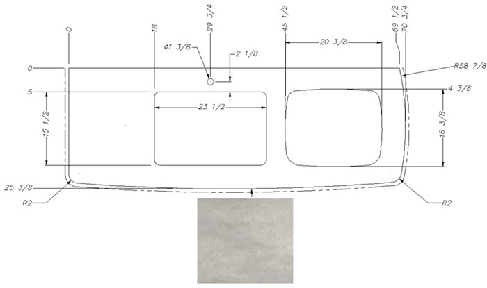 Countertop - Kitchen Top - 201QB - 70 7/8" x 25 1/2" - Pressed - C2 - w/Buildup - Sandstone Natural Vinyl - Furrion Range
