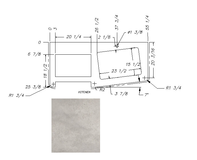 Countertop - Kitchen Top - 176RD - 23 1/8" x 53 1/2" - Pressed - No Buildup - Sandstone Natural Vinyl