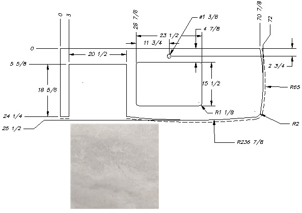 Countertop - Kitchen Top - 255BHSL/283BHSL - 47 7/8" x 30 3/8" - Pressed - w/Buildup - Sandstone Natural Vinyl