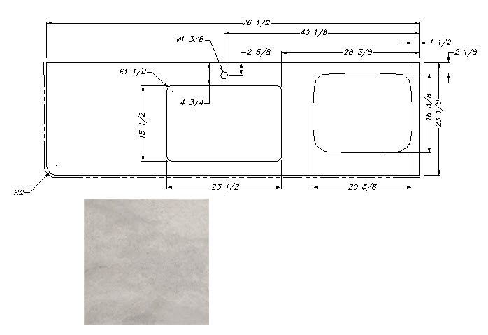 Countertop - Kitchen Top - 261RBSL/285BHSL - 40 1/2" x 48 1/4" - C2 - Pressed - w/Buildup - Sandstone Natural Vinyl