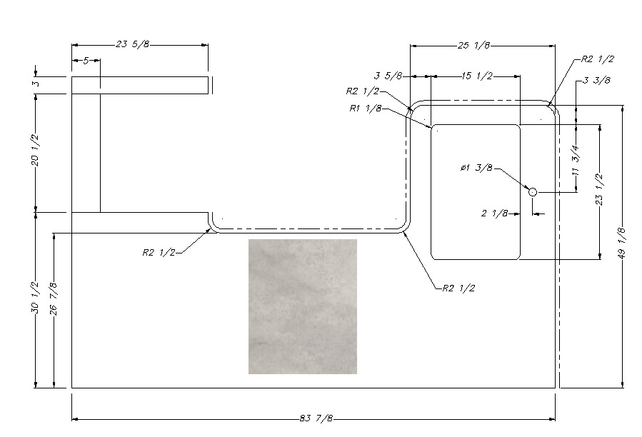Countertop - Kitchen Top - 287RKSL - 49 1/8" x 83 7/8" - Pressed - C2 - w/Buildup - Sandstone Natural Vinyl