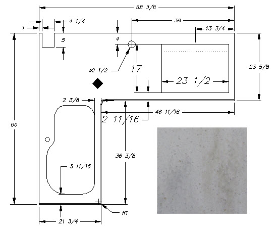 Countertop - Kitchen Top - MO3760/61 - w/SS Sink Cutout - Corian - Eased Edge - Double Lip - Sea Salt